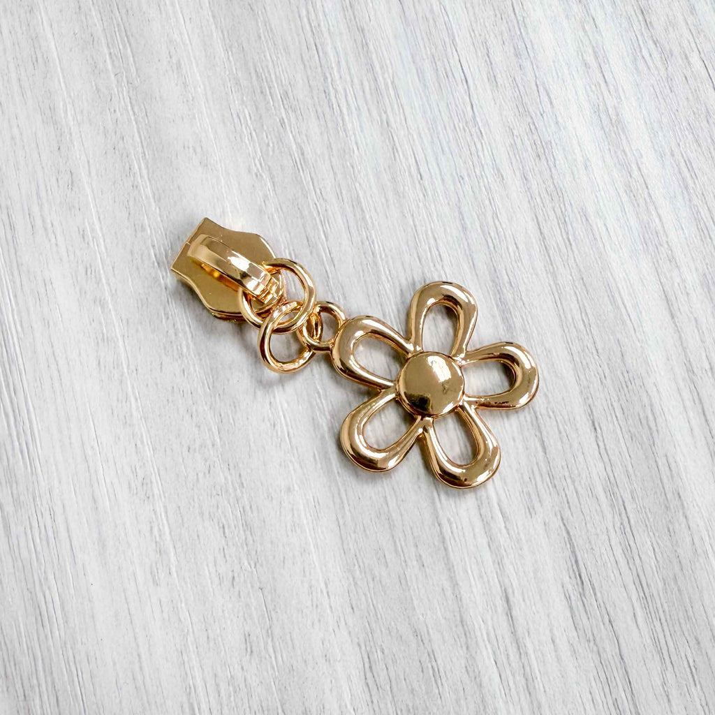 Vintage Gold Flower Pulls for #5 Zipper Tape - Package of 10